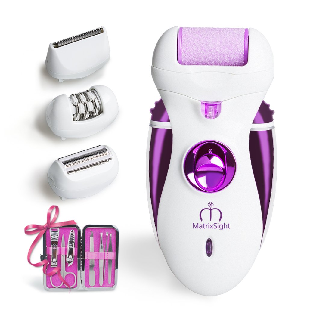 - Multifunción: 4 en 1, depilador / eliminador de callos / máquina de afeitar / cortadora de pelo, piel muerta, dura y seca en los pies, pelo no deseado en las piernas o los brazos, y pelo feo no deseado en otras áreas sensibles.