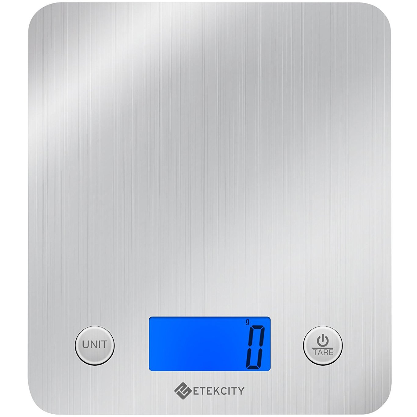 La Báscula Digital para Cocina de Etekcity de acero inoxidable se puede medir con precisión los alimentos sólidos y líquidos con facilidad y comodidad, permitiéndole controlar completamente las porciones de comida, condimentos y la nutrición. Con una capacidad de 11 libras (5 kg) y la división de 0,1 oz (1 g), esta báscula de alimentos digital proporciona resultados precisos en lb / oz, g, ml, y fl.oz. La Función Tara permite al usuario determinar fácilmente el peso neto de un artículo en su envase.