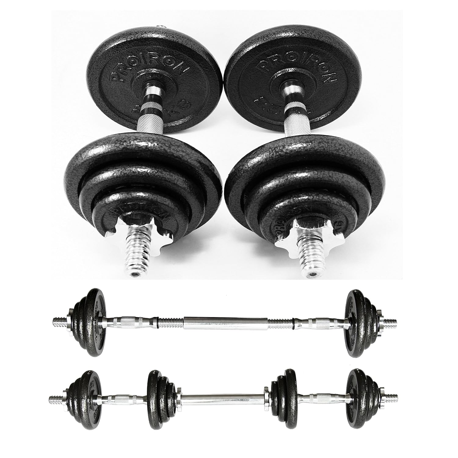 Equipe su gimnasio domestico con el flexible PROIRON 20KG conjunto de mancuernas ajustables para esculpir y reforzar sus músculos. Es un conjunto perfecto de mancuernas de acero fundido para cualquier persona que esté buscando a empezar su mundo de levantamiento de pesas.