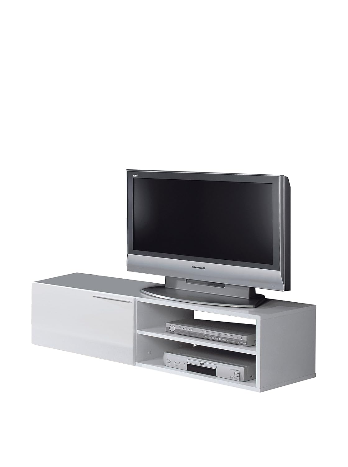 Mueble comedor televisor bajo, una puerta y un estante color blanco brillo dimensiones 35 x 130 x 42 cm