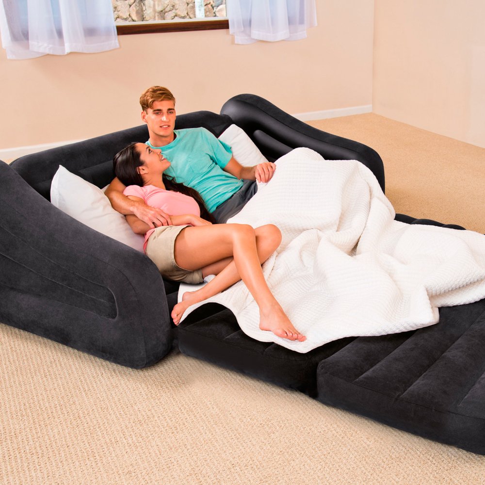 Sillón inflable convertible en cama para dos personas, 193 x 221 x 71 cm, color negro