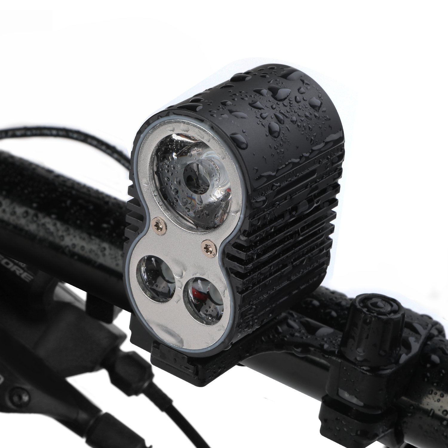 Luz Delantera Bicicleta Impermeable + 10400 mAh Batería, GVDV 2 en 1 USB Recargable y Batería Externa, Multi-Función LED Faro Delantero para Bici, MTB, Moto, Camping, 3pcs CREE XML-T6 LED, 5 Modos, interruptor impermeable diseñado