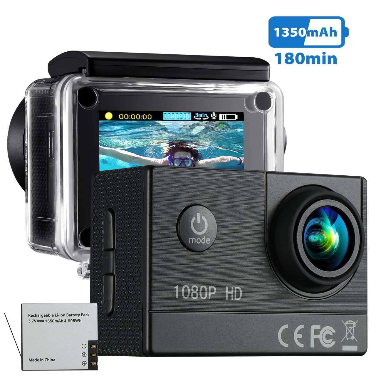 VicTsing EyproS Cámara Acción Deportiva Acuatica 1080P Resistente al Agua y Impacto,180min de 1080p FHD Vídeo, Carcasa Sumergible y Amplio Ángulo de Visión 170°, Batería Recargable, perfecto para Deportes Acuaticas, Correr, Ciclismo, Nadar, etc.