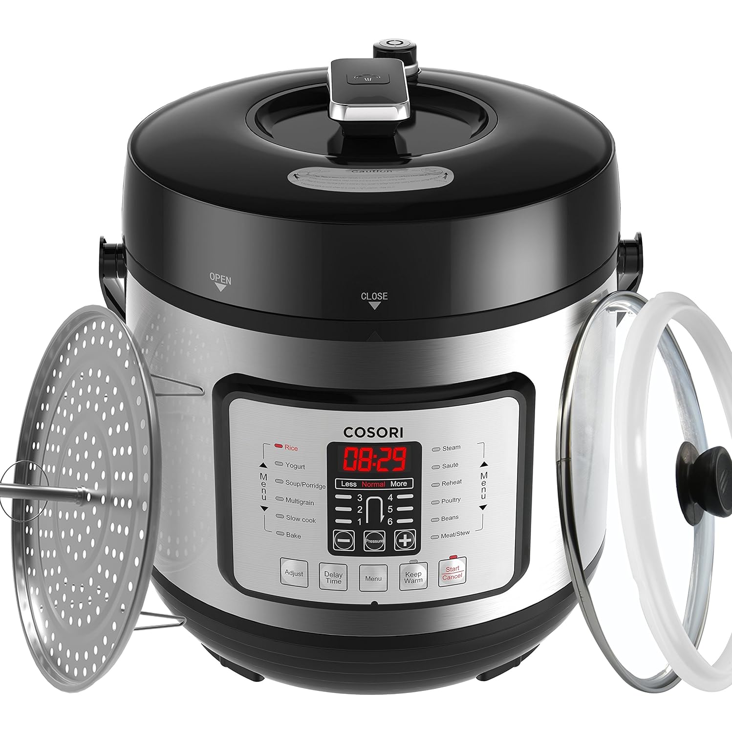COSORI C2126-PC Olla a Presión Programable Eléctrica, Olla Express 7 en 1 Multifuncional, 6 Niveles de Presión, Olla Arrocera Cocción Lenta, con Libro de Receta, Capacidad 6L/1000W, Acero Inoxidable
