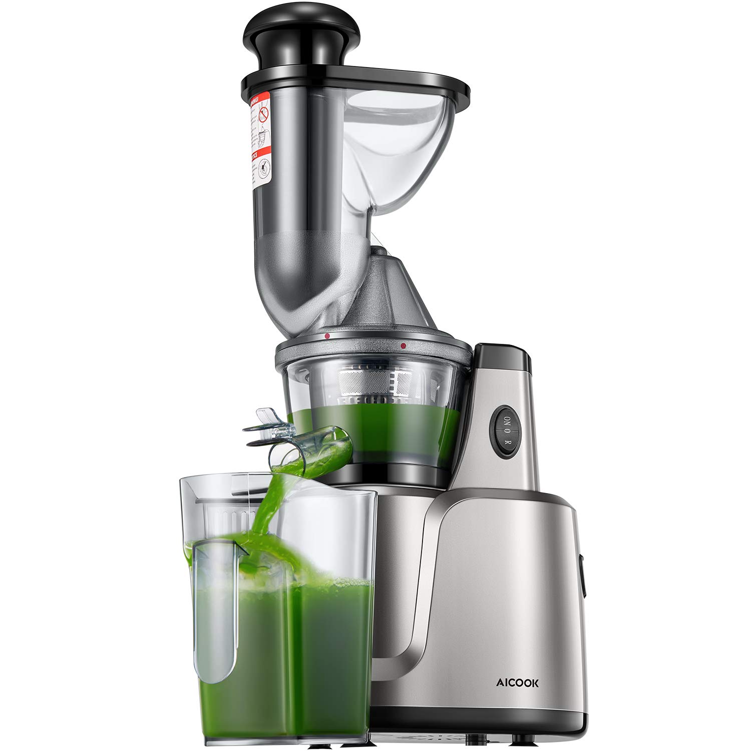 Licuadora Prensado Frio, Aicook 3 en 1 Licuadora para Frutas, Verduras, Alimentos para Bebés y Helado, Diseño de Bajo Ruido, Pre-limpieza y la Función Inversa, con Pies Antideslizante